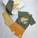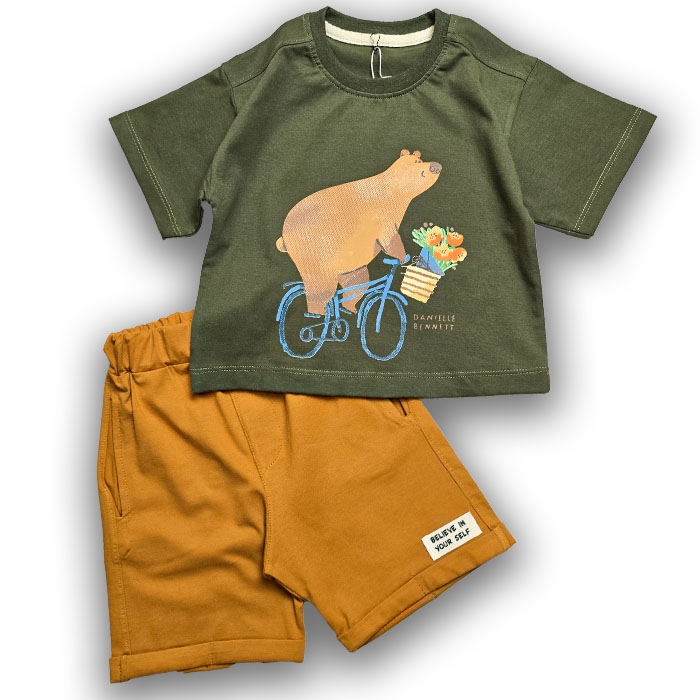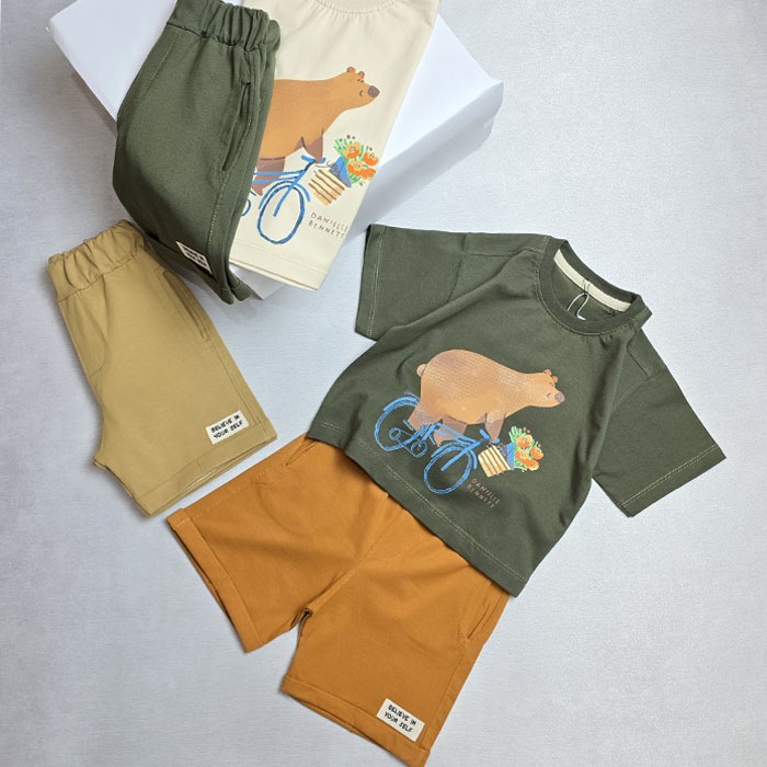 اگه آماده ماجراجویی با استایل خاص برای گل پسرتون هستید ست راحت و جذاب با تیشرتچاپپ خرس دوچرخه سوار و شلوارک جنس این ست محبوب نخ پنبه نرم و تن خور عالی مناسب بازی ، گردش و روزمره از خریدش پشیمون نمیشی داری دو رنگ تیشرت (سبز ارتشی و کرم با چاپ خرس ) و سه رنگ شلوارک(سبز ارتشی ، شتری و نخودی )مناسب سن 9 ماه تا 8 سال