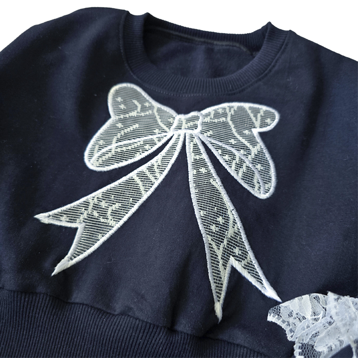 ست کراپ و شلوار پاپیون با تور زیبا و شیک روی کمر شلوار