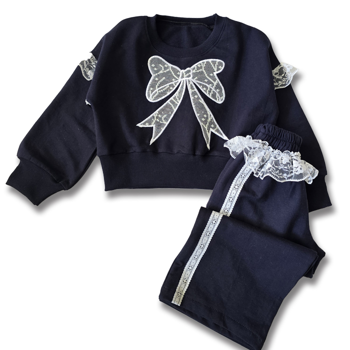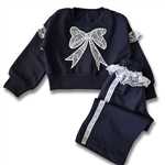 ست کراپ و شلوار پاپیون با تور زیبا و شیک روی کمر شلوار